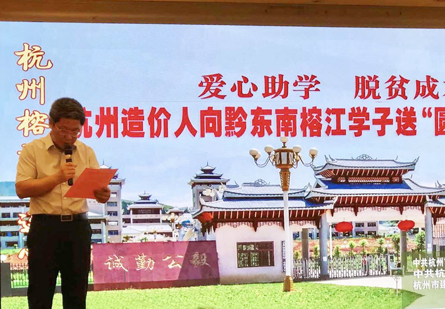 去年7月,杭州市造价咨询企业积极响应杭州市政府“杭州、黔东南”东西部扶贫号召,组织爱心企业代表到黔东南贫困县榕江实地调研考察,与榕江结对帮扶,协会与58家企业向榕江县捐款74.7万元,帮助榕江县188户贫困家庭改善住房条件。目前榕江县249户贫困群众的透风漏雨房已全面改造完成,杭州造价人的爱心善举在贵州榕江已经落地。